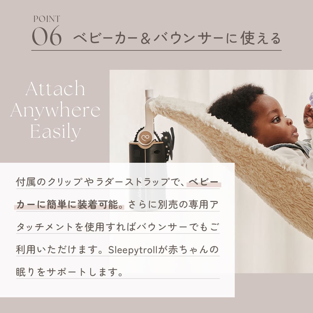 バウンサーやベビーベッドでSleepy trollを使用するには別売りのアダプターが必要