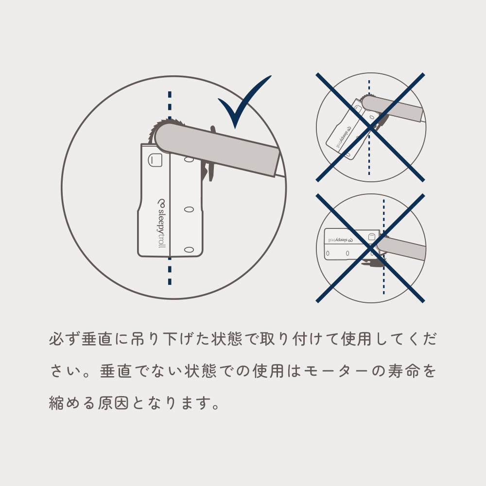・本製品は垂直に吊り下げた状態でお子様の手が届かない距離で設置してください。
