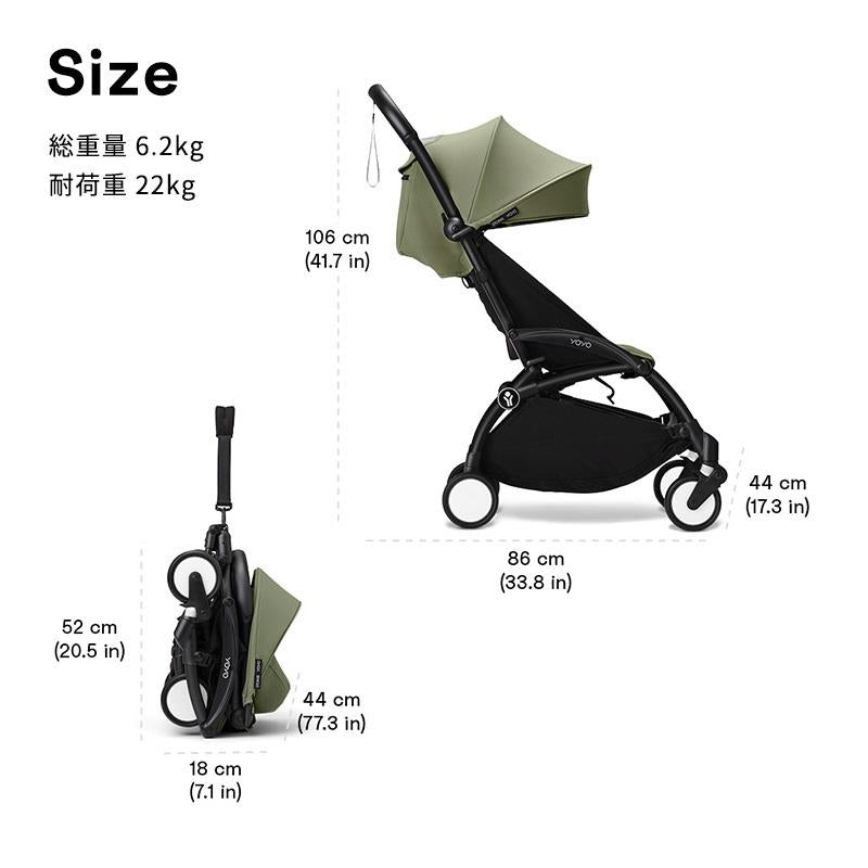 | YOYO3 B型ベビーカー 製品寸法 | W44cm×H96cm×D106cm |